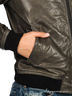 Стильная кожаная куртка прямого кроя. Застегивается на молнию. Воротник-стоечка из трикотажной резинки в мелкий рубчик. На левом рукаве накладной карман на молнии. Два врезных кармана на молнии. Два врезных кармана с клапанами. Два внутренних кармана на пуговице. Манжеты выполнены из трикотажной резинки в мелкий рубчик. Тонкий подклад.