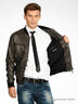Стильная кожаная куртка прямого кроя. Застегивается на молнию. Воротник-стоечка из трикотажной резинки в мелкий рубчик. На левом рукаве накладной карман на молнии. Два врезных кармана на молнии. Два врезных кармана с клапанами. Два внутренних кармана на пуговице. Манжеты выполнены из трикотажной резинки в мелкий рубчик. Тонкий подклад.