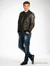 Стильная кожаная куртка прямого кроя. Застегивается на молнию. Воротник-стоечка из трикотажной резинки в мелкий рубчик. На левом рукаве накладной карман на молнии. Два врезных кармана на молнии. Два врезных кармана с клапанами. Два внутренних кармана на пуговице. Манжеты выполнены из трикотажной резинки в мелкий рубчик. Тонкий подклад.