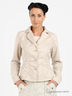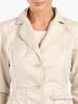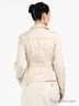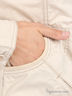 Детали: отложной воротник с лацканами, длинные рукава с небольшой манжетой на пуговицах, два прореза на груди имитируют кармашки, по спинке резинка.