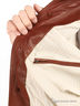 Детали: втачной отложной ворот на стойке с пуговицей, погоны на плечах в качестве отделки, длинный рукав посажен на трикотажную манжету-резинку с вставкой из кожи с застежкой на пуговице, два накладных кармана с клапаном на пуговице и два прорезных боковых кармана, застежка на пуговицах, пояс изделия выполнен трикотажной-резинкой, два внутренних прорезных кармана на молнии, по поясу небольшая сборка, на спинке и на груди небольшая нашивка в виде логотипа бренда, на подкладке куртки изображение самолета.