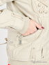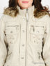 Стильная демисезонная куртка выполнена из плотной хлопковой ткани с синтепоновым утеплителем. Модель свободного силуэта с воротом-стойкой из кош-корсе и с капюшоном-трансформером со съемным искусственным мехом. Застегивается на молнию. Спереди два накладных кармана и два втачных кармана. Длинный прямой рукав и низ изделия дополнены манжетами из кош-корсе. Декоративные шнуровки на полочке и на спинке. Отличный вариант для тех, кто ценит комфорт и качество.