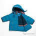 Теплая детская куртка на пуховом подкладе из тонкой не продуваемой и непромокаемой ткани. Прямого кроя. Застегивается на молнию и планку с кнопками. Воротник-стойка на трикотажной резинке в рубчик с отстегивающимся капюшоном на кнопках. Длинный прямой рукав на трикотажной резинке в рубчик. Два врезных кармана. Тонкая хлопковая подкладка.