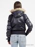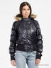 Куртка короткая с застежкой на молнию и кнопки. Изделие дополнено капюшоном, который декорирован искусственным мехом. Спереди два втачных кармана. Широкая резинка по низу изделия.