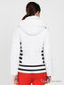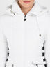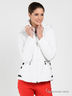 Практичная куртка, верх которой выполнен из джордана классического белого цвета. Модель с застежкой на молнию снабжена удобным капюшоном и функциональными карманами, украшена с боков черными полосками. Отличный вариант на морозную погоду.