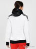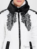 Практична куртка, верх которой выполнен из джордана классического белого цвета и черной вышивкой в верхней части изделия. Модель с застежкой на молнию снабжена удобным капюшоном и функциональными карманами. Отличный вариант на морозную погоду.
