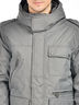 Детали: воротник стойка, капюшон на кнопках и липучке, застегивается на молнию и кнопки, спереди 2 прорезных кармана на молнии, 3 накладных кармана на клапане и кнопках, внутри 2 прорезных кармана на молнии, 1 карман на кнопке