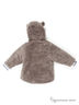 Куртка прямого силуэта из искусственного меха с хлопковым подкладом утеплена синтепоном. Застежка на полочке на кнопки. Капюшон с декоративными ушками. Рукава посажены на трикотажные манжеты. Застежка на молнию. Полочка украшена нашивками.