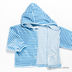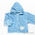 Детская велюровая кофточка с капюшоном. Застегивается на пластмассовые кнопки. Длинный прямой рукав дополнен велюровой лентой. Полочка декорирована аппликацией в виде рыбки.