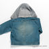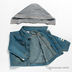 Куртка застегивается на металлические кнопки. Длинный прямой рукав. Ворот-стойка дополнен трикотажным капюшоном, пристегивающимся на пуговицы. Два накладных кармашка с клапанами на кнопке.