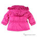 Зимняя куртка для девочки с капюшоном. Силуэт приталенный. Ворот высокий. Застежка на молнии. Рукав длинный. Куртка декорирована рюшами. Три накладных кармана. Капюшон пристегивается на молнию.