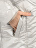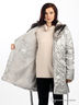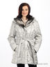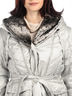 Детали: большой капюшон с меховой подкладкой и кулиской по краю, меховой отложной воротник, застегивается на молнию и ветрозащиту на пуговицах, два прорезных кармана на кнопках, два внутренних кармана, талия подчеркнута поясом