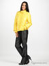 Очаровательная демисезонная стеганная куртка ярко-желтого цвета. Воротник стойка. Застегивается на молнию и планку с на кнопках. Длинные рукава с оригинальными манжетами на молнии. Два прорезных кармана. Шелковистая подкладка.