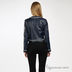 Приталенный силуэт. Фронтальная застежка-молния. Длинный прямой рукав. Округлый вырез горловины, без воротника. На полочке накладные карманы. Декоративная нашивка из цепочки. Шелковистая подкладка.