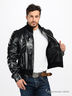 Кожаная куртка прямого кроя с воротом-стойкой застегивается на молнию. Воротник и низ изделия - трикотажные резинки. Два передних кармана, один внутренний карман. Манжеты на кнопке.