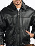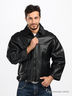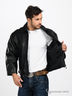 Кожаная куртка прямого кроя с отложным воротом застегивается на молнию. Два передних кармана.