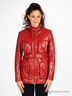 Кожаная куртка прямого кроя с небольшим воротом-стойкой застегивается на молнию и кнопки. Дополнительная застежка-ремешок на воротнике. Два передних кармана, два нагрудных кармана. По боковым швам пришиты шлевки, вставлен ремень. Шелковистый подклад. Контрастная декоративная прострочка.