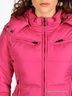Приталенная куртка с капюшоном и воротом-стойкой застегивается на молнию. Капюшон отстегивается, дополнительная застежка на кнопки на капюшоне. Два передних кармана, два нагрудных кармана.