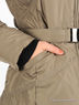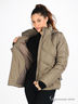 Куртка прямого кроя с воротом-стойкой и отстегивающимся капюшоном застегивается на молнию. Два передних кармана. По боковым швам пришиты шлевки, вставлен пояс.
