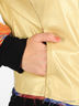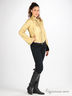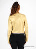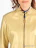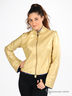 Кожаная куртка прямого кроя с небольшим воротом-стойкой застегивается на молнию. Дополнительная застежка на кнопку на воротнике. Два передних кармана. Необычный яркий подклад. Фигурные вытачки. Глубокие декоративные разрезы нижней части рукавов.