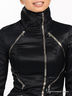 Детали: застежка на молнию, отложной воротник, длинный прямой рукав на молнии, полочка декорирована металлическими молниями