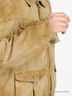 Замечательная куртка выполнена из замши. Шелковистый стеганый подклад, утеплитель - тонкий слой синтепона. Модель прямого силуэта с отложным воротом. Застегивается на молнию. Спереди два накладных кармана с клапаном на пуговице, два нагрудных накладных кармана с клапаном на пуговице, два внутренних кармана. Нашивки на локтях. Манжеты на пуговице. Шикарный вариант на каждый день.