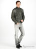 Детали: ворот стойка с застежкой ремешком, небольшие погоны в качестве отделки, застежка на металлической молнии, рукав длинный посажен на небольшую манжету из основного материала, у запястья рукава металлическая застежка, два прорезных кармана с листочком на молнии, один внутренний прорезной карман на молнии и один на металлической кнопке, короткая модель длиной по пояс.