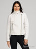 Стильная женская куртка укороченного силуэта из драпового материала. Крой изделия в стиле "косуха". Воротник-стойка из резинки в рубчик. Спереди два кармана на молнии. Мягкий хлопковый подклад.