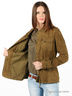 Детали: втачной отложной ворот, четыре накладных кармана с клапаном на металлической кнопке, застежка на клапан с металлическими кнопками, по линии талии кулиска позволяет придать приталенный силуэт, небольшие погоны в качестве отделки, рукав прямой длинный с хлястиком на металлической кнопке у запястья, куртка с одним шлицом.