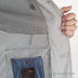 Стильный пиджак из легкого плотного серого хлопка. Модель приталенного кроя, с узким лацканом воротника. Все швы декорированы контрастной строчкой. Застежка на пуговицы. Внутренние швы обработаны лентой. Есть функциональные карманы спереди, а также внутренние карманы.