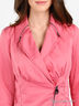 Модная куртка с длинными рукавами и отложным воротником с лацканами на молнии. Приталенный силуэт. Изделие выполнено из гладкой атласной ткани с шелковистой подкладкой. Застежка на молнию и пуговицу. Спереди 2 декоративных прорезных кармана. Яркий и необычный вариант, украсит любой наряд!