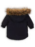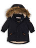 Куртка для мальчика прямого покроя. Длинные рукава, застежка на молнию и кнопки, капюшон с меховой опушкой.