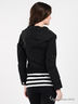Модная куртка из тонкого, мягкого полухлопкового материала. Модель дополнена капюшоном на кулиске. Застежка на металлическую молнию. Длинные рукава с манжетами на кнопках, дополненные патом для фиксации подворотов. На полочках три прорезные кармана на молнии. Спинка присборена на резинки.