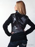 Спортивная женская куртка из плащевой ткани, комбинированной с флисом. Модель отличают красивые линии кроя, изящная фигурная линия низа и стильный печатный принт на спинке на тему отдыха в горах.