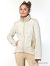 Спортивная женская куртка из плащевой ткани, комбинированной с флисом. Модель отличают красивые линии кроя, изящная фигурная линия низа и стильный печатный принт на спинке на тему отдыха в горах.