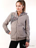 Куртка женская из флиса с асимметричным решением кроя и вставками из плащевой ткани. Модель украшена стильными принтами и гравировкой на тему горнолыжного курортного отдыха.