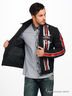 Стильная куртка спортивного дизайна с застежкой на молнию и хлястик с пуговицей. Воротник - стойка, по бокам два удобных втачных кармана. Изделие декорировано контрастными кожаными нашивками. С внутренней стороны изделия есть дополнительный прорезной карман.