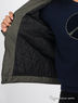 Стильная куртка спортивного дизайна с застежкой на молнию и хлястик с пуговицей. Воротник - стойка, по бокам два удобных втачных кармана. Изделие декорировано контрастными кожаными нашивками. С внутренней стороны изделия есть дополнительный прорезной карман.