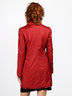 Однобортная застежка на пуговицы. Отложной воротник, планка застежки и подол декорированы кокетливой рюшей по всей длине изделия. Спереди два врезных кармана внизу, и один карман на груди. Силуэт изделия слегка приталенный. Нежная шелковистая подкладка.