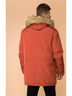 Удлинённая мужская куртка прямого кроя со съёмным капюшоном с искусственным мехом. Изделие застёгивается на молнию, а также ветрозащитный клапан. Куртка имеет шесть внешних карманов, утеплённых флисом и один внутренний карман. Также куртка утеплена флисом внутри по талии. Есть вязаные манжеты на рукавах и довяз на воротнике.