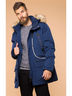 Удлинённая мужская куртка прямого кроя со съёмным капюшоном с искусственным мехом. Изделие застёгивается на молнию, а также ветрозащитный клапан. Куртка имеет шесть внешних карманов, утеплённых флисом и один внутренний карман. Также куртка утеплена флисом внутри по талии. Есть вязаные манжеты на рукавах и довяз на воротнике.