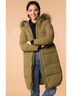 Теплая стеганная куртка прямого кроя с высоким воротником и капюшоном. Куртка комфортной длины, что не сковывает движений и защищает от холода. Для удобства по бокам предусмотрены прорезные карманы. Застегивается куртка на молнию. Также есть две функциональные молнии по боковым швам, которые позволяют сделать куртку более свободной. Капюшон дополнен натуральным мехом, который крепится на пуговицах.