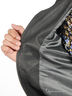 Детали: воротник-стойка, застегивается на металлическую молнию, спереди 2 накладных кармана на клапане и кнопке, низ, манжеты и ворот - резинка в рубчик, внутри прорезной карман на пуговице, украшена вставками из мягкой кожи