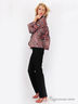 Куртка расклешенного силуэта, воротник стойка-волан, по горловине функциональный бант, рукав расклешен. Вся куртка сшита ярусами, что придает дополнительный романтичный стиль. Модель выполнена из качественного материала практичной расцветки. Отличный вариант на каждый день.
