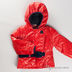 Расклешенная модель застегивается на три кнопки, молнию и крупную пуговицу. Два передних кармана. Один внутренний карман на липучке. Внутри вставлена резинка регулирующая ширину изделия. Декоративные элементы: встречные сборки на рукавах, встречные сборки и хлястик на спинке. Модель утеплена синтепоном и подходит для температурного режима от 0 до 15 градусов.