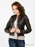 Стильная куртка из натуральной кожи. Хб подкладка. Воротник-стойка. Застежка на молнию. Спереди 4 прорезных кармана на молнии. Рукава с трикотажными манжетами. Плечики с погонами на кнопке.