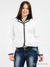 Оригинальна женская куртка прямого кроя, выполнена из плащевой ткани. Изделие со съёмным капюшоном, застежка на молнию. Модель декорирована простроченными складками. По бокам расположены карманы с застежкой на молнию.