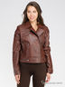 Короткая кожаная куртка на косой молнии с отложным воротом, декорирована металлическими молниями. Модель с длинными рукавами, отложным воротником. Отличный вариант для прохладной погоды.