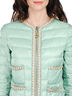 Детали: укороченная куртка из японской таффеты с четырьмя кармашками, расположенными симметрично друг другу на палочке. Изделие расшито бисером и камнями нежного, жемчужного цвета по срезам карманов и горловине. Рукав длинный, застежка на металлической молнии. Изделие очень тонкое и практически невесомое