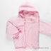 Мягкая демисезонная куртка на флисе. Верх из тонкой мягкой плащевки. Застежка на молнию, капюшон декорирован оборками. Трикотажные манжеты в мелкий рубчик. Два кармана. Декорирована аппликацией.